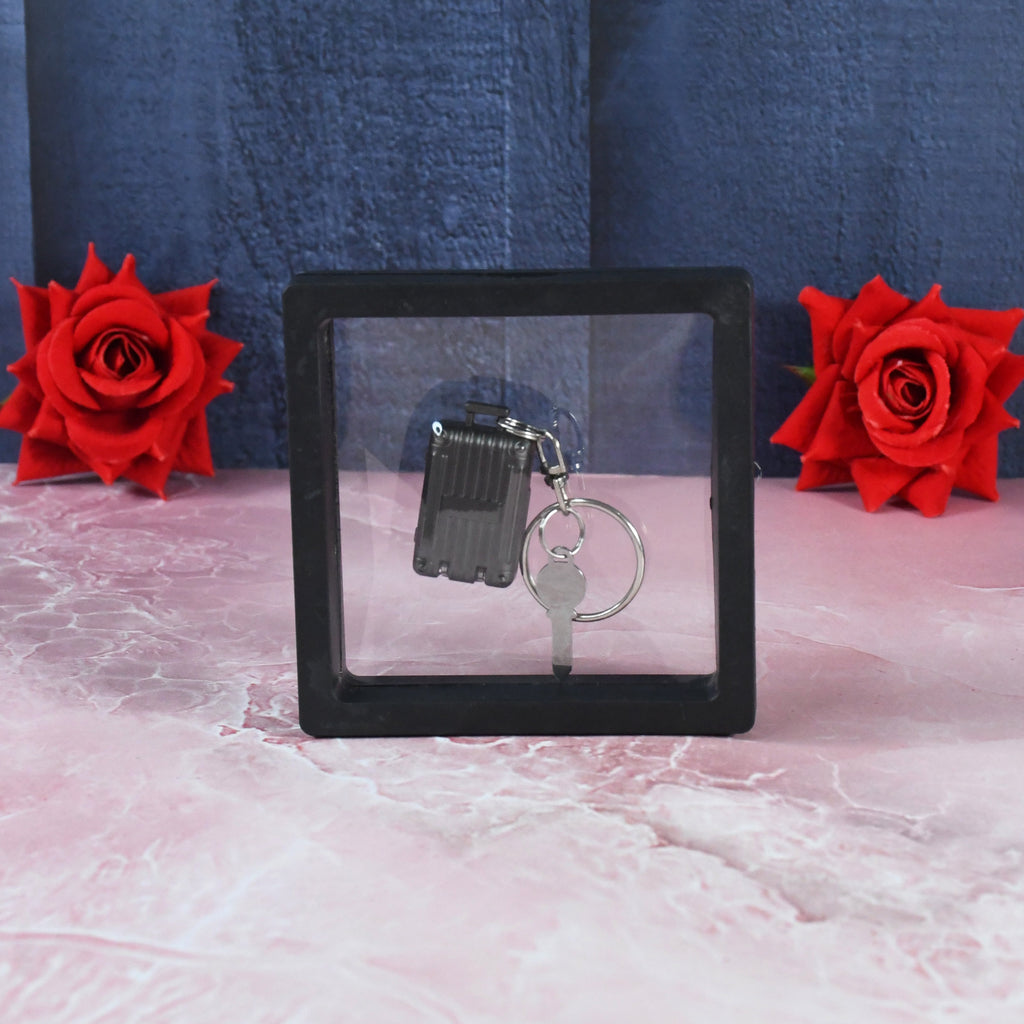 Suitcase Shape Nail Clipper / Cutter Keychain With Key & 3D Floating Frame Display Case (1 Set)